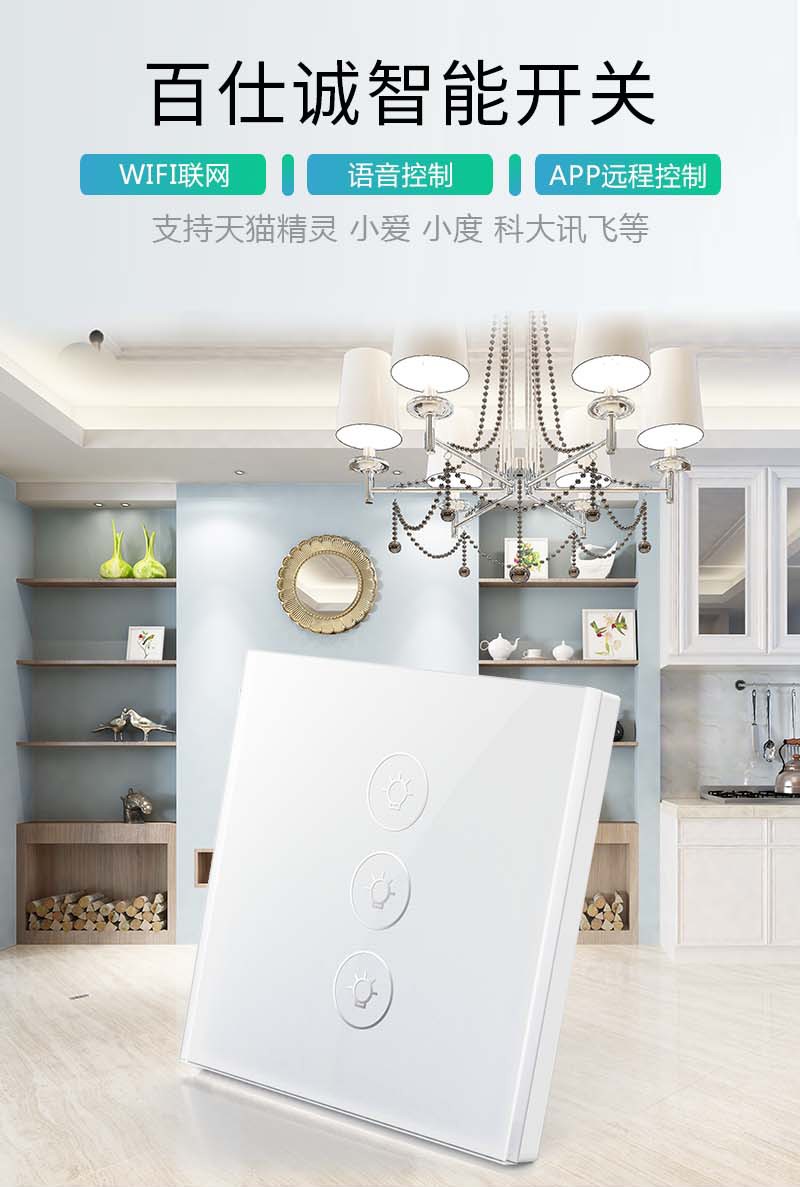 智能觸控平面鋼化玻璃式三位開關面板_百仕誠