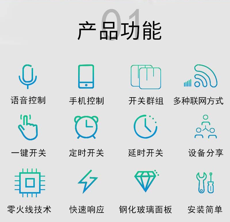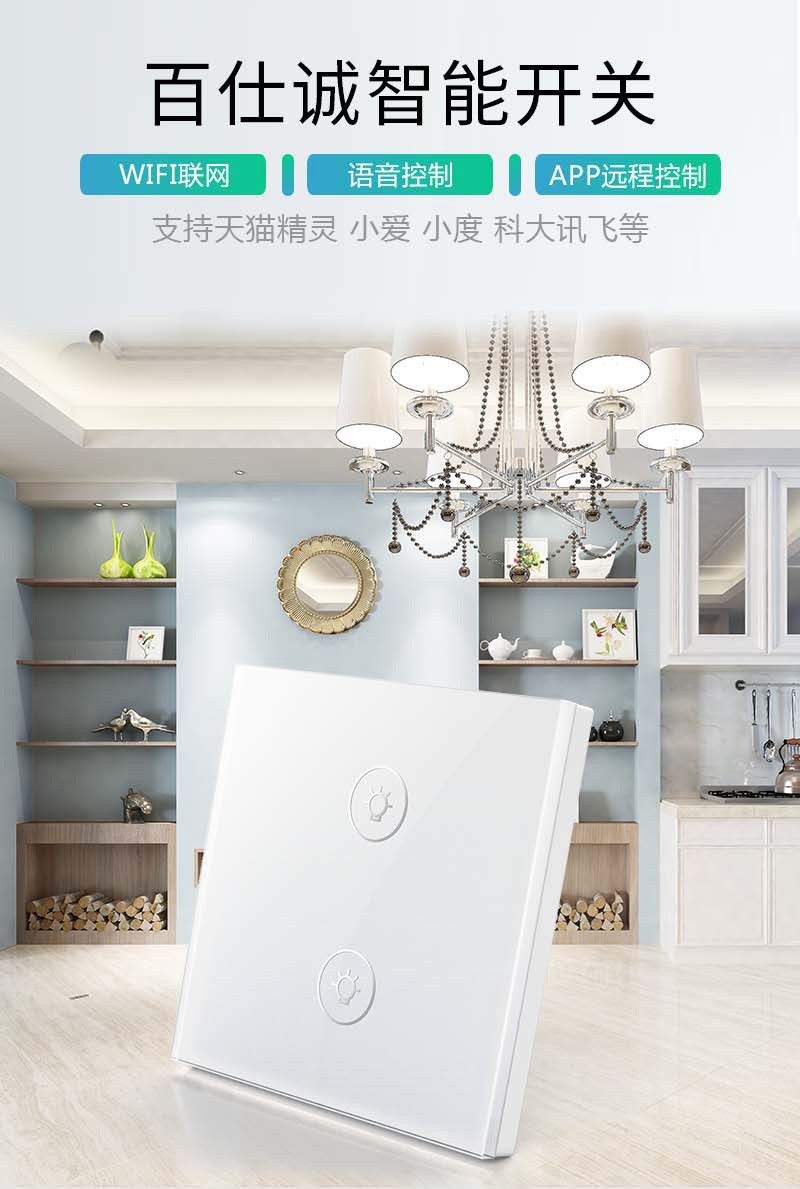 智能觸控平面鋼化玻璃式二位開關面板_百仕誠