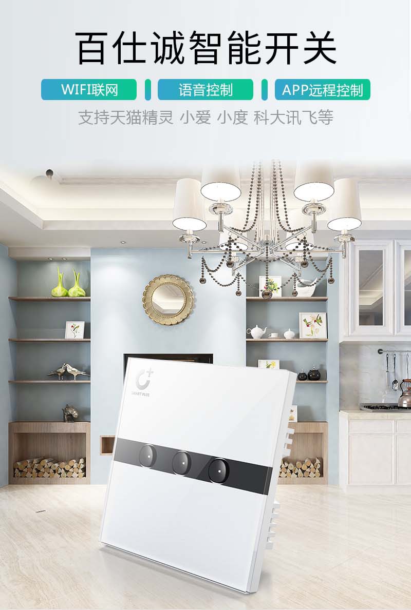 智能觸控凹槽式三位開關面板_百仕誠