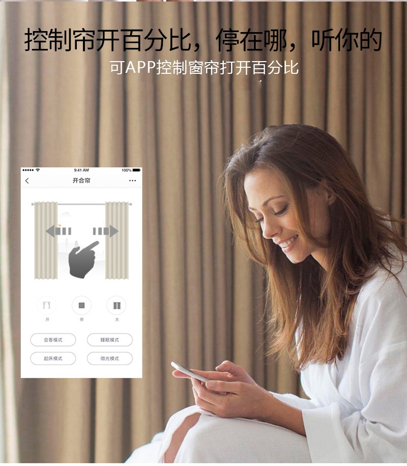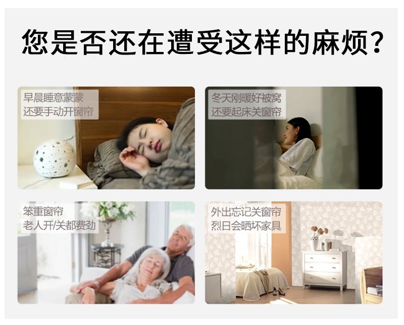 此產(chǎn)品適用于卷簾、柔紗簾、香格里拉簾,改變傳統(tǒng)窗簾手動(dòng)拉升,調(diào)節(jié)遮光的方式,通過(guò)語(yǔ)音控制、手機(jī)APP控制、遙控控制等手段,讓您悅享智能生活帶來(lái)的便捷與樂(lè)趣!